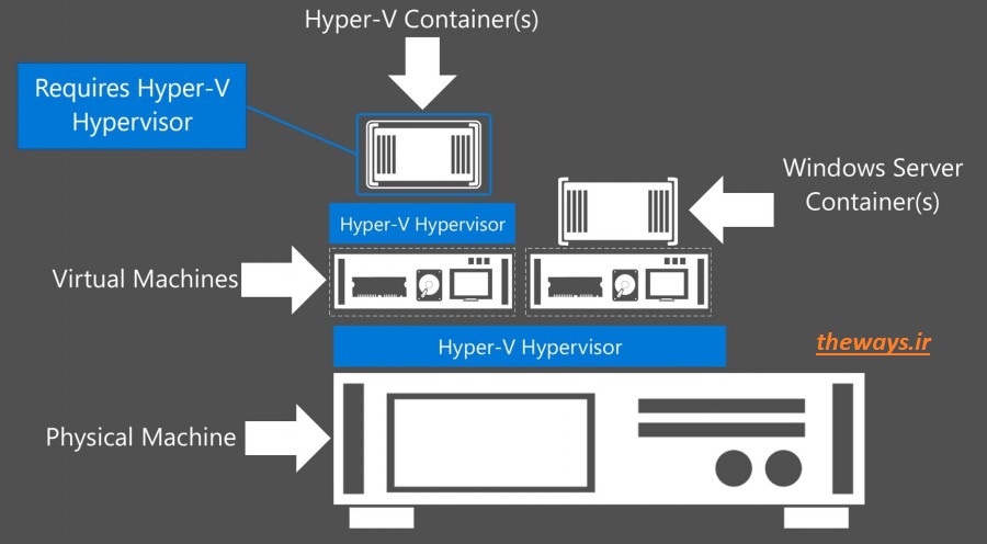 خود ویندوز سرور ایزوله هست! اما به صورت مستقیم با سیستم عامل(OS) ویندوز سرور ۲۰۱۶ در ارتباطه و اجرا میشه!