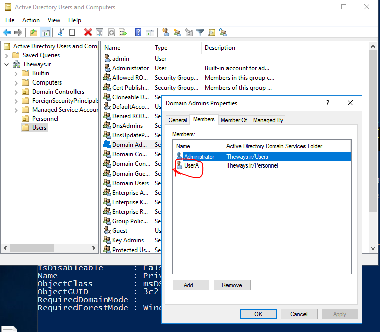 بسیار عالی ، اکنون نوبت این است که کاربر مورد نظر را برای گروه مورد نظر به عضویت موقت درآوریم   🙂 برای مثال در این سناریو میخوایم کاربری با شناسه UserA را برای مدت ۷ دقیقه عضو گروه Domain Admins کنیم با هم مراحل را دنبال کنیم