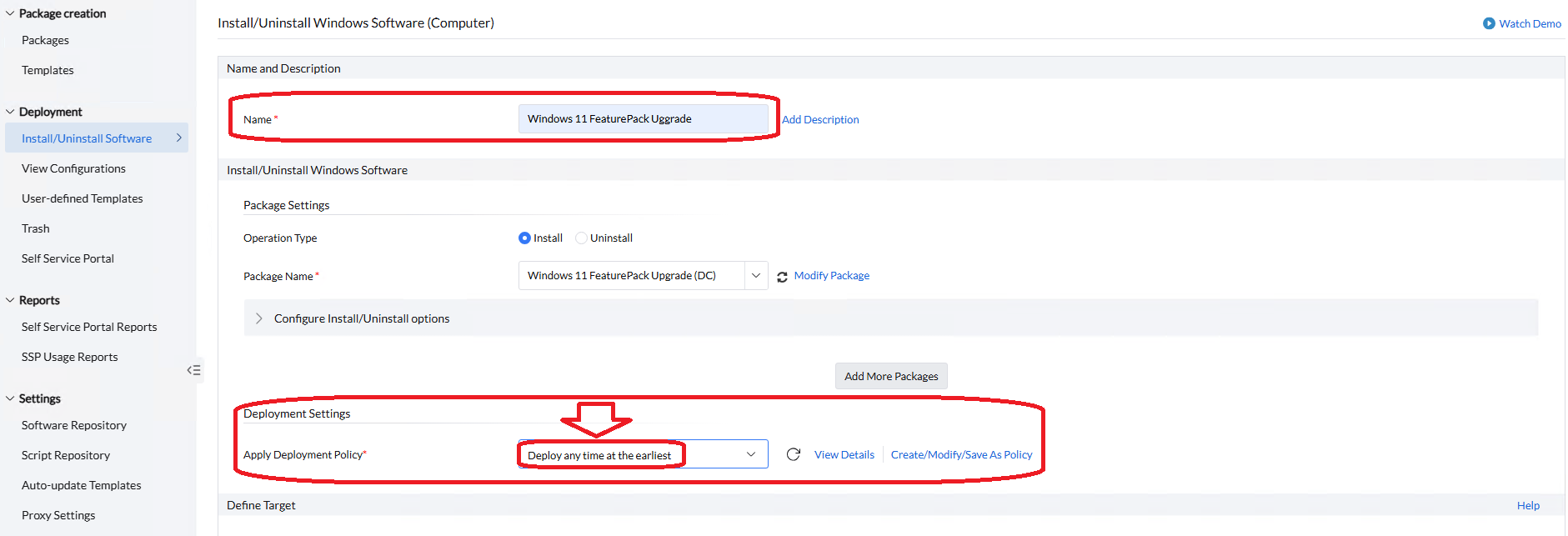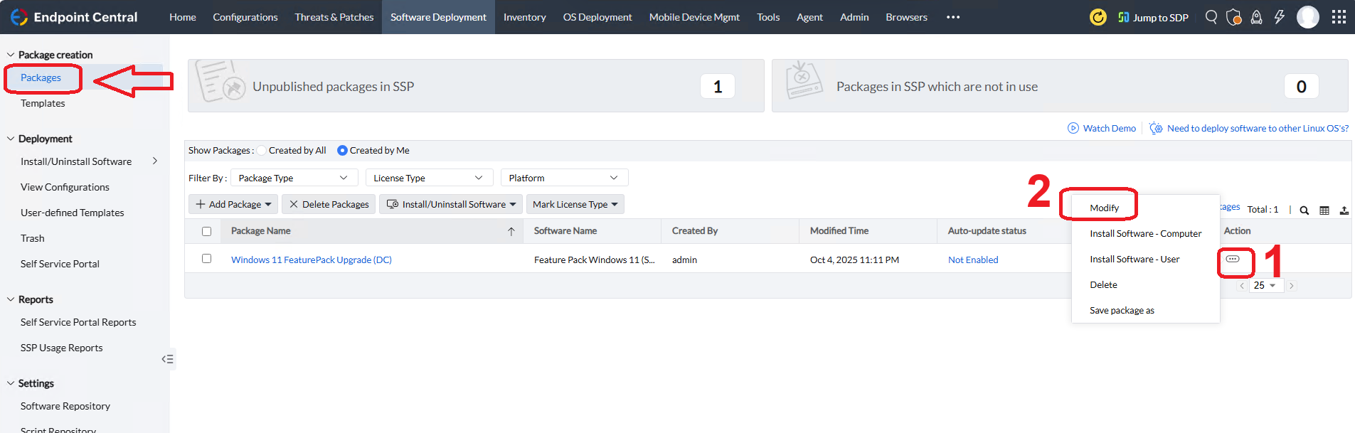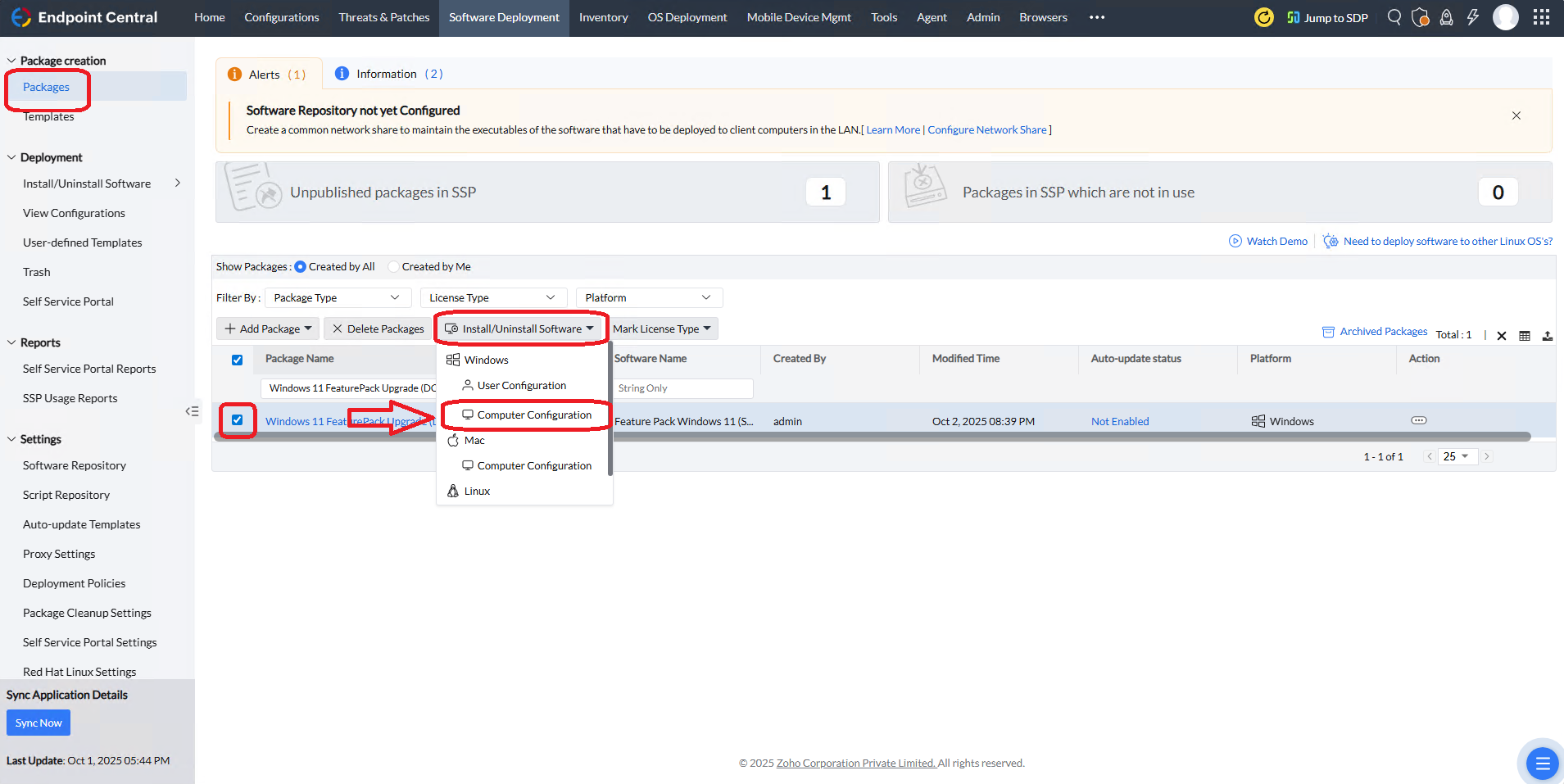 و با کلیک بر روی قسمت نمایش داده شده در تصویر زیر به قسمت Packages در ماژول Software Deployment و پکیج ساخته شده منتقل می شویم.