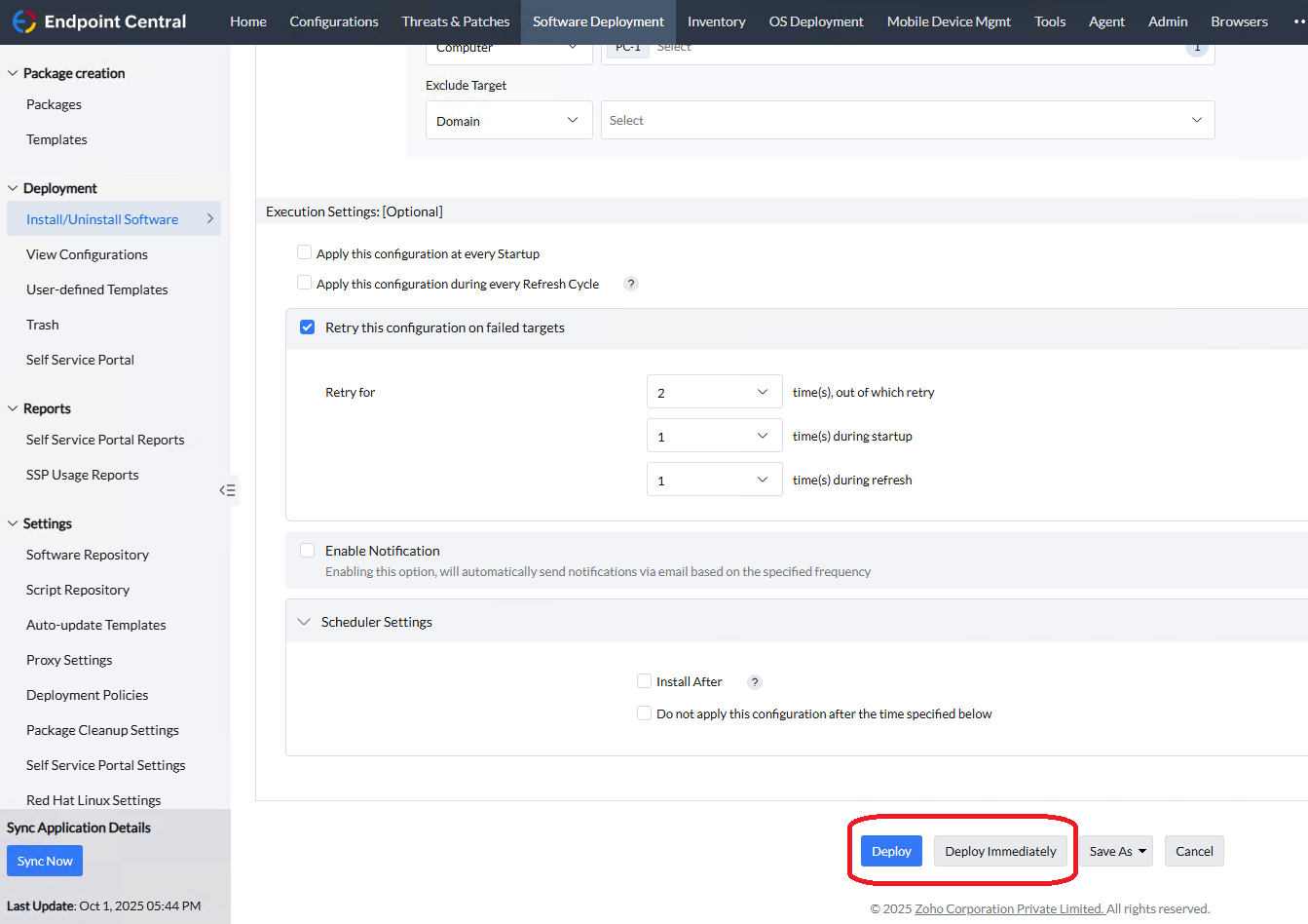 در نهایت با کلیک بر روی دکمه Deploy یا Deploy Immediately اقدام به شروع پروسه می  کنیم.